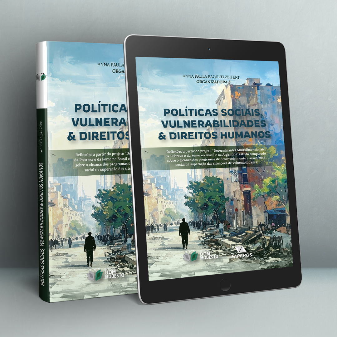 A obra Políticas Sociais, Vulnerabilidades e Direitos Humanos: Reflexões a partir do projeto “Determinantes Multidimensionais da Pobreza e da Fome no Brasil e na Argentina” reúne análises críticas e interdisciplinares que dialogam com os desafios estruturais da sociedade contemporânea no enfrentamento das múltiplas expressões da vulnerabilidade social. Os textos, produzidos por docentes e pesquisadores vinculados ao Programa de Pós-Graduação em Direito da Universidade Regional do Noroeste do Estado do Rio Grande do Sul (Unijuí), são resultado de reflexões amadurecidas no âmbito do projeto de pesquisa financiado pela Fundação de Amparo à Pesquisa do Estado do Rio Grande do Sul – FAPERGS.